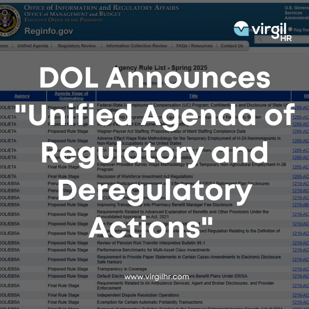 The Department of Labor recently announced that it has advanced a set of high-priority actions designed to “reduce unnecessary burdens on employers and employees,” with