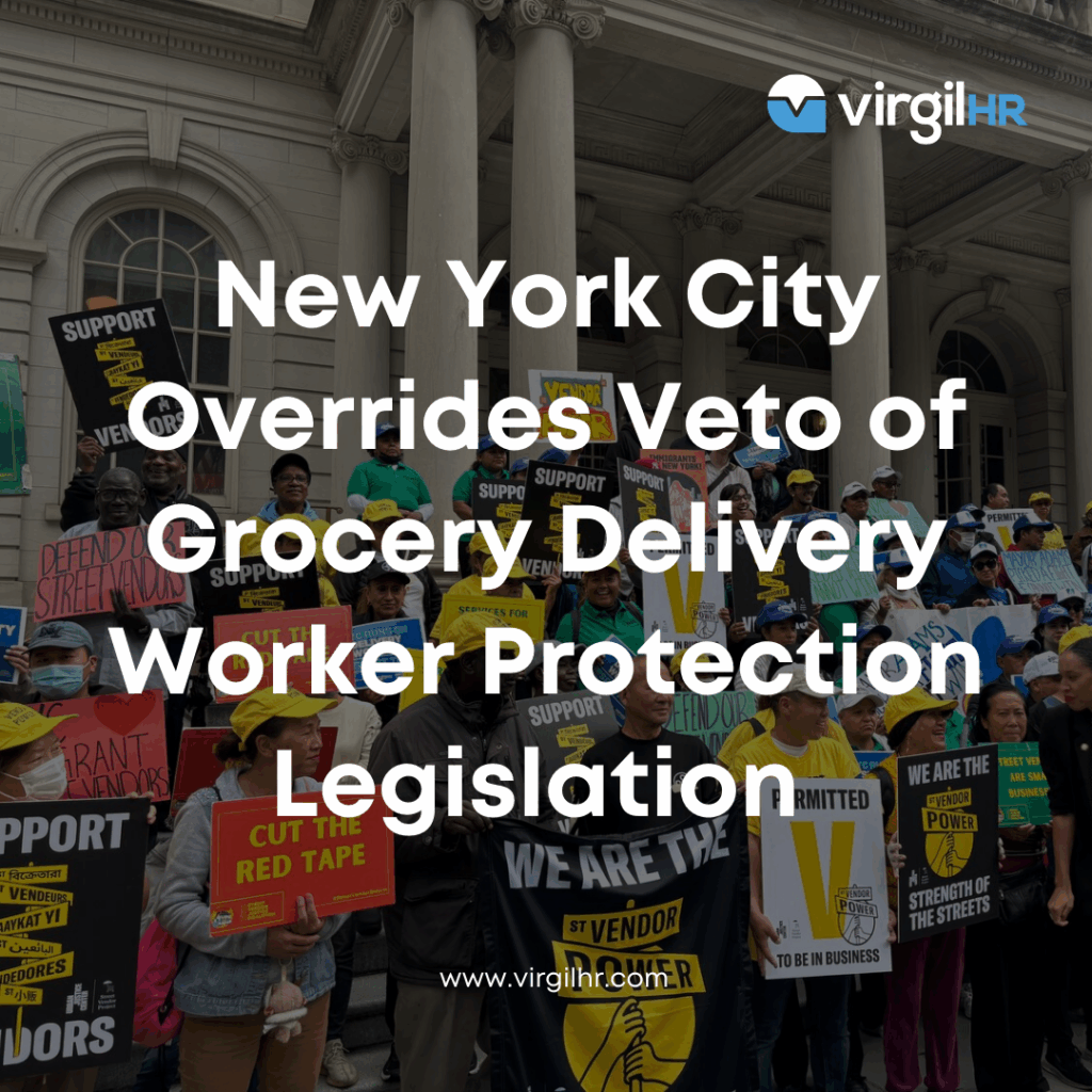 The New York City Council recently voted to override Mayor Adams’ veto of legislation concerning grocery delivery worker protections. Introduction 1133-A extends food delivery worker