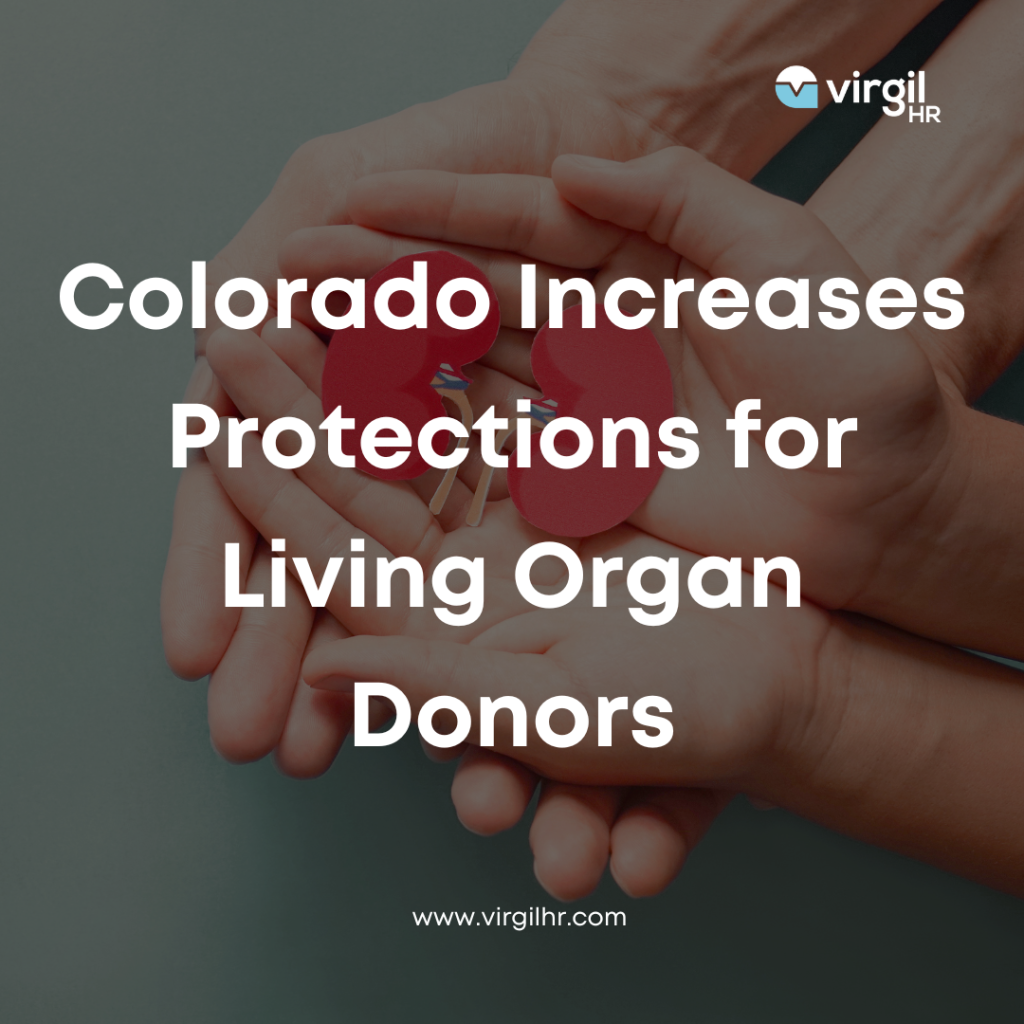 Colorado has increased protections for living organ donors. Effective immediately, employers are prohibited from discriminating or retaliating against or taking any adverse action against an